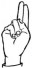 На ћирилици написано МИЛИЈАС РАДОЊИЋ састоји се из 14 слова [?]. Исписано ћириличном једноручном азбуком за глувонеме: